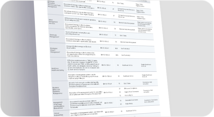 Halliburton 2021 Annual & Sustainability Report Appendix 83 Sustainability Accounting Standards Board (SASB) Table Page World Economic Forum SASB Topic Accounting Metric Code Number(s) Section Reference Stakeholder Capitalism Pillar and Core Metrics Total fuel consumed, percentage renewable, Planet: TCFD percentage used in: (1) on-road equipment and EM-SV-110a.1 75 Data Tables Implementation vehicles and (2) off-road equipment Emissions Reduction Discussion of strategy or plans to address air EM-SV-110a.2 27 Climate Change and Emissions Planet: TCFD Services and Fuels emissions-related risks, opportunities, and impacts Reduction Implementation Management Percentage of engines in service that meet Tier 4 EM-SV-110a.3 27 Climate Change and Emissions Planet: TCFD compliance for non-road diesel engine emissions Reduction Implementation (1) Total volume of fresh water handled in operations, Planet: Water consumption (2) percentage recycled EM-SV-140a.1 30 Environmental Management and withdrawal in water- Water stressed areas Management Services Discussion of strategy or plans to address Planet: Water consumption water consumption and disposal-related risks, EM-SV-140a.2 30 Environmental Management and withdrawal in water- opportunities, and impacts stressed areas Volume of hydraulic fracturing fluid used, EM-SV-150a.1 75 Data Tables percentage hazardous Chemicals Management1 Discussion of strategy or plans to address EM-SV-150a.2 30 Environmental Management chemical-related risks, opportunities, and impacts Average disturbed acreage per (1) oil and EM-SV-160a.1 N/A See Footnote 2 Ecological (2) gas wellsite Impact Management2 Discussion of strategy or plan to address risks and opportunities related to ecological impacts EM-SV-160a.2 N/A See Footnote 2 from core activities (1) Total recordable incident rate (TRIR), (2) fatality rate, (3) near miss frequency rate (NMFR), (4) total vehicle incident rate (TVIR), and (5) average hours of EM-SV-320a.1 51 Health and Safety People: Health and health, safety, and emergency response training for Safety % Workforce (a) full-time employees, (b) contract employees, and Health and Safety (c) short-service employees Description of management systems used to People: Health and integrate a culture of safety throughout the value EM-SV-320a.2 51 Health and Safety Safety % chain and project lifecycle Amount of net revenue in countries that have the Governance: Anti- 20 lowest rankings in Transparency International’s EM-SV-510a.1 75 Data Tables corruption Business Corruption Perception Index Ethics and 21 Ethics and Compliance Payments Transparency Description of the management system for prevention EM-SV-510a.2 23 Supply Chain Governance Governance: Anti- of corruption and bribery throughout the value chain corruption 72 Human Rights Management Discussion of corporate positions related to 16 Corporate Governance of the Legal government regulations and/or policy proposals that EM-SV-530a.1 Governance: Governance and Regulatory address environmental and social factors affecting 25 Public Policy body composition Environment the industry Critical Description of management systems used to identify Incident Risk and mitigate catastrophic and tail-end risks EM-SV-540a.1 51 Health and Safety Management Number of active rig sites EM-SV-000.A N/A See Footnote 3 Number of active well sites EM-SV-000.B N/A See Footnote 3 Activity Metrics3 Total amount of drilling performed EM-SV-000.C N/A See Footnote 3 Total number of hours worked by all employees EM-SV-000.D 75 Data Tables 1 Usage of hydraulic fracturing fluid used to open and enlarge fractures within the rock formation is outside of the Company’s operational control. 2 Ecological Impact Management was deemed not applicable, as management of disturbed acreage per oil and gas wellsite is outside of the Company’s operational control. 3 Number of active rigsites, number of active wellsites, and total amount of drilling performed are not relevant to the Company’s operational control, and have therefore been omitted.