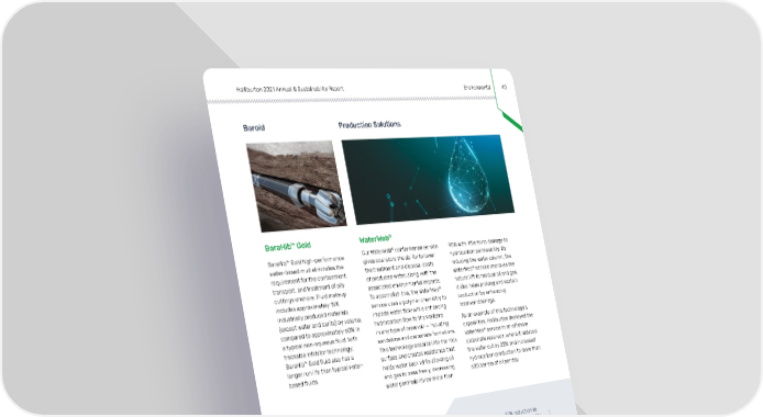 Halliburton 2021 Annual & Sustainability Report Environmental 40 Baroid Production Solutions ® BaraHib™ Gold WaterWeb ® BaraHib™ Gold high-performance Our WaterWeb conformance service 90% with little to no damage to water-based mud eliminates the gives operators the ability to lower hydrocarbon permeability. By requirement for the containment, the treatment and disposal costs reducing the water column, the transport, and treatment of oily of produced water, along with the WaterWeb® service improves the cuttings onshore. Fluid makeup associated environmental impacts. natural lift to residual oil and gas. To accomplish this, the WaterWeb® includes approximately 15% It also helps prolong and sustain industrially produced materials service uses a polymer chemistry to production by enhancing (except water and barite) by volume, impede water flow while enhancing reservoir drainage. compared to approximately 60% in hydrocarbon flow to the wellbore As an example of this technology’s a typical non-aqueous fluid. With in any type of reservoir — including capabilities, Halliburton deployed the trackable inhibitor technology, sandstone and carbonate formations. WaterWeb® service in an offshore BaraHib™ Gold fluid also has a This technology absorbs into the rock carbonate reservoir, where it reduced longer run life than typical water- surface and creates resistance that the water cut by 22% and increased based fluids. holds water back while allowing oil hydrocarbon production to more than and gas to pass freely, decreasing 600 barrels of oil per day. water permeability by more than 95% regained 97% reduction to oil permeability water permeability d 600 m , y t bili a 400 e 380 m r e P e v i t c e f f E 16 Oil Water Before treatment After treatment